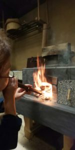 下の写真は、宿泊した「只今加藤家」のおくどさんで、創始者のお一人である松場登美さん自ら薪で火をおこし竃でご飯を炊いてくださっている様子です。